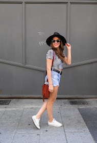 While I show you the today look, very comfy, like all lately, ready to do a thousand things. I chose a Levis Vintage shorts, which were my mother, and I customized (DIY) with patience and scissors ;D A stripes crop tee and my Converse.